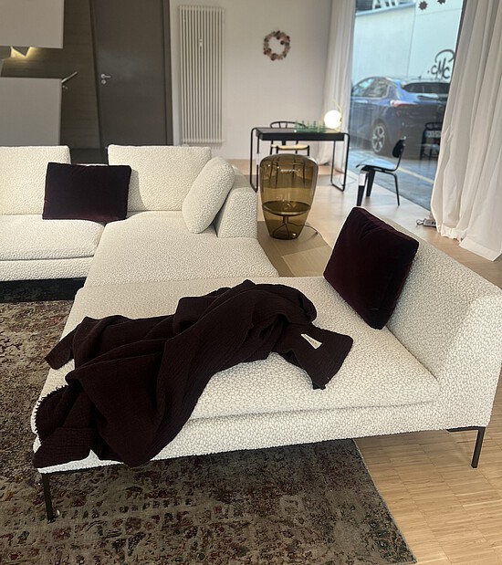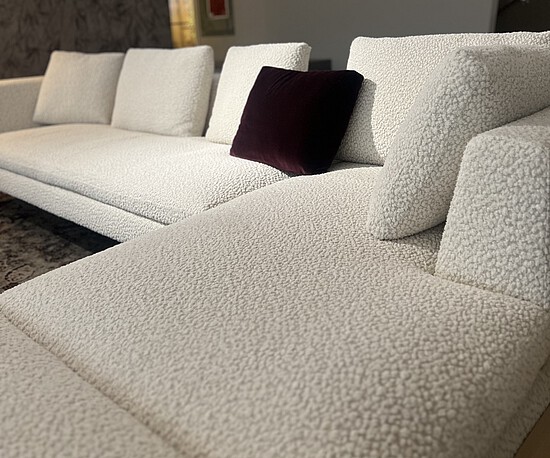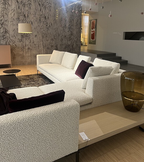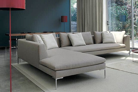 Die Weiterentwicklung des langjährigen B&B Italia-Bestsellers Charles bereichert das System um eine Version mit größerer Tiefe und neuem Bezugsstoff «Leopard». Die markanten Merkmale des Projekts bleiben: Das essentielle Design der Füße aus Aluminiumdruckguss in Form eines umgekehrten „L“, die einzelnen Sitzkissen und die losen Rückenkissen.