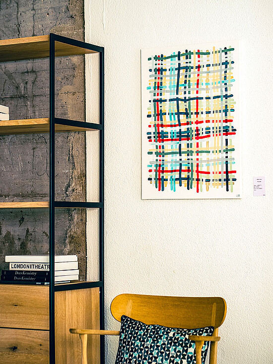 Kommen Sie vorbei und tauchen Sie in ihre vielschichtigen, grafischen Kompositionen ein.