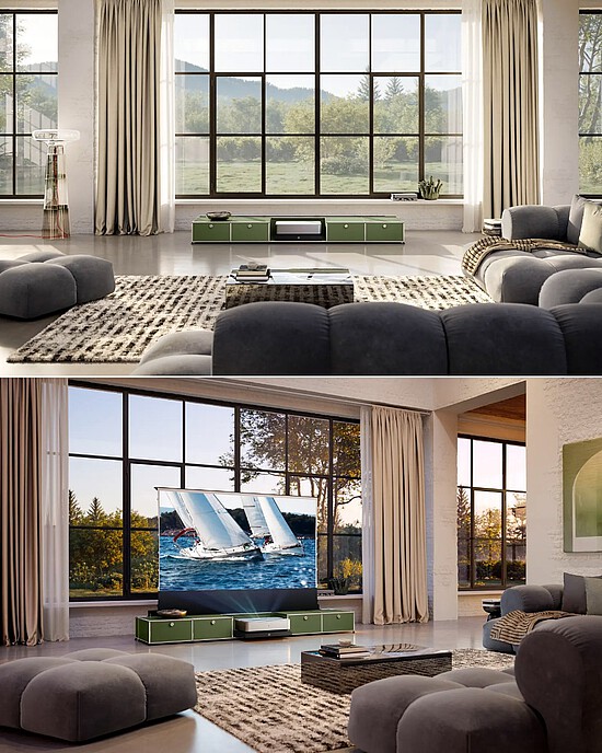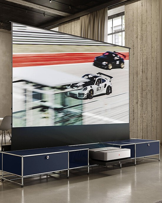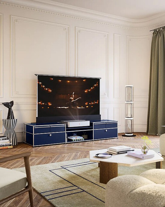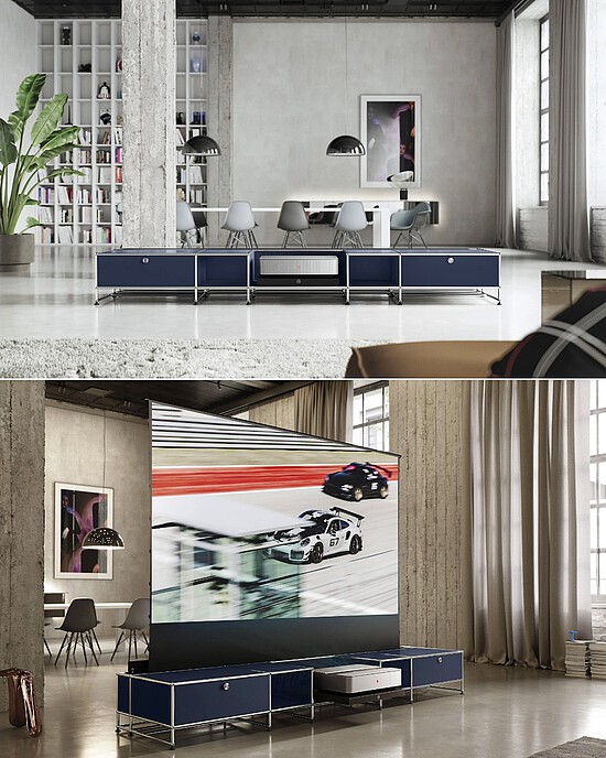 Für den mit dem iF Design Award prämierten Cinema TV «Leica Cine 1» entwickelte die Schweizer Möbelmanufaktur USM eine exklusive Kollektion von Multimediamöbeln, die Funktionalität und Design des Ultrakurzdistanz-Laser-TV-Geräts in nahtloser Perfektion ergänzt. Diese besondere Verbindung integriert das Heimkino perfekt in das Wohninterieur und schafft ein Ambiente, das höchsten Komfort, Langlebigkeit und Stil vereint – ein stilvolles Umfeld, das den Alltag bereichert und nachhaltigen Filmgenuss ermöglicht. Die modulare, gleichzeitig maßgeschneiderte Kollektion umfasst derzeit drei Varianten entsprechend der drei verfügbaren Bilddiagonalen des Leica Cine 1.